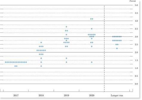 美联储最新的“点阵图”显示,明年将加息三次,2019年将加息两次和2020年再加息两次,对长期联邦基金利率的预测仍是2.8%。尽管加息预期未出现显著变化,但美联储官员已经增强了加息的理由。这是因为两名最温和的委员卡什卡利和埃文斯将不具有2018年投票权,他们将被两位相对强硬的委员梅斯特和威廉姆斯所替代。此外,如果特朗普税改和潜在的基础设施支出带动经济进一步走强,那么美联储明年加息三次的预估可能稍显保守了。