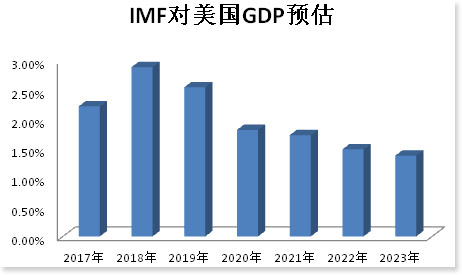 这与IMF对美国经济的预估存在相当一段差距。IMF同样认为,美国经济将在今年出现拐点,但认为美国经济未来五年将逐步放缓,到2023年增长率仅为1.38%。